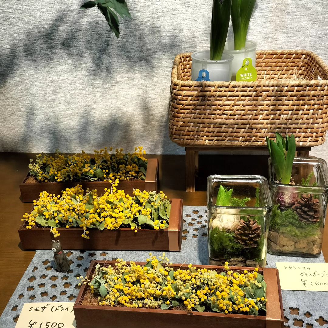 ドライミモザと、ヒヤシンス球根。
