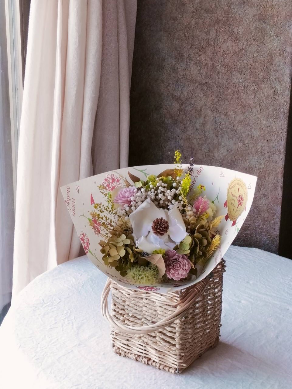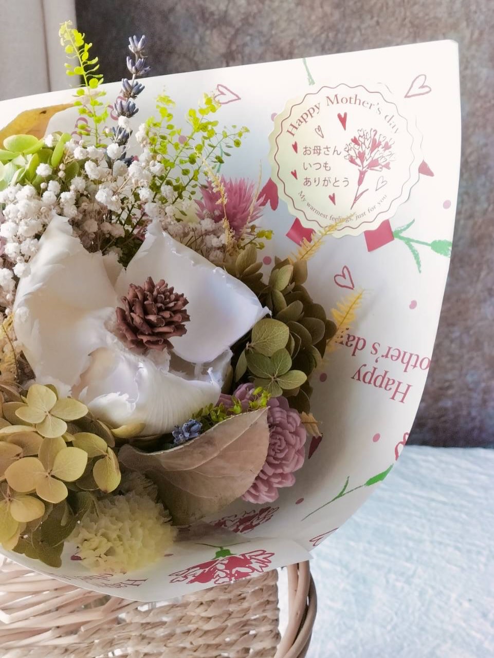 ☆今回載せたお写真は、ドライフラワーのお花束です。