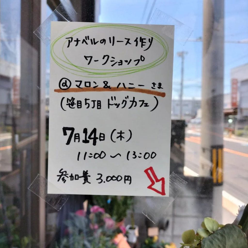 アナベルのリース作りワークショップ! こんばんは、Flower the Dayで…