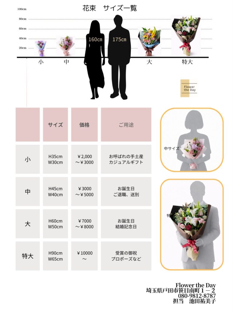 フラワーギフト サイズ早見表! こんばんは、Flower the Dayです。実…