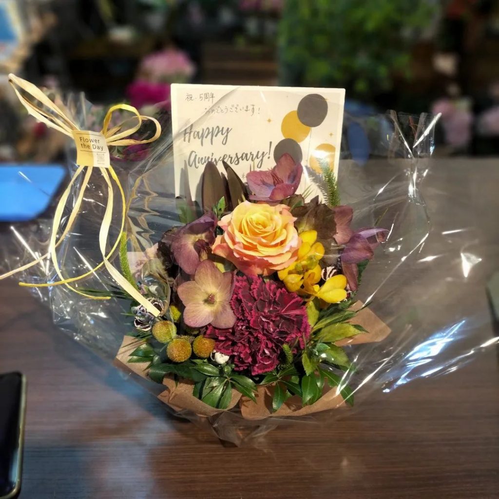 おめでとう!の花束。 こんばんは、Flower the Dayです。 ピンク色の…